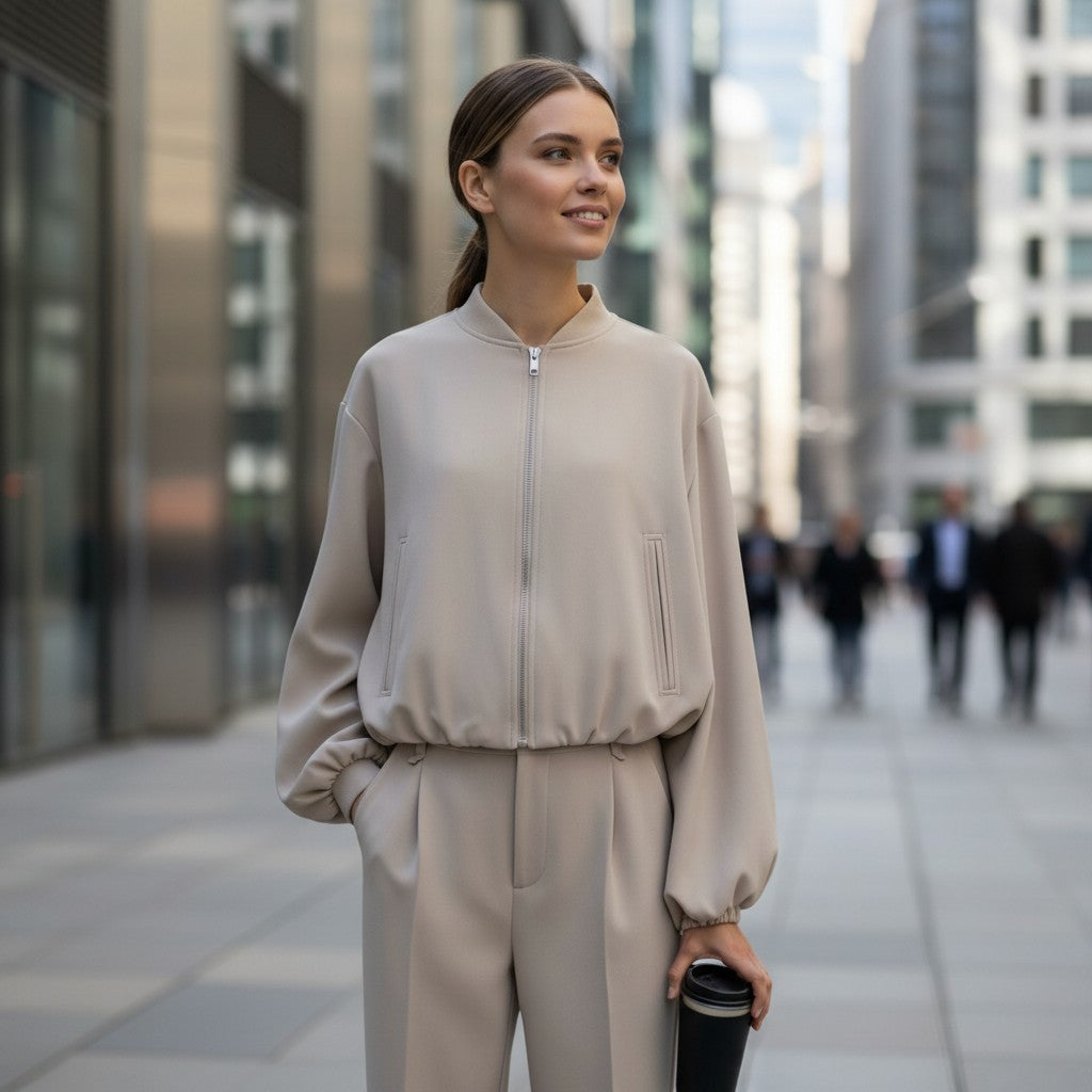 Ensembles 2 pièces veste bombers + pantalon large à pinces- ATTENTIF