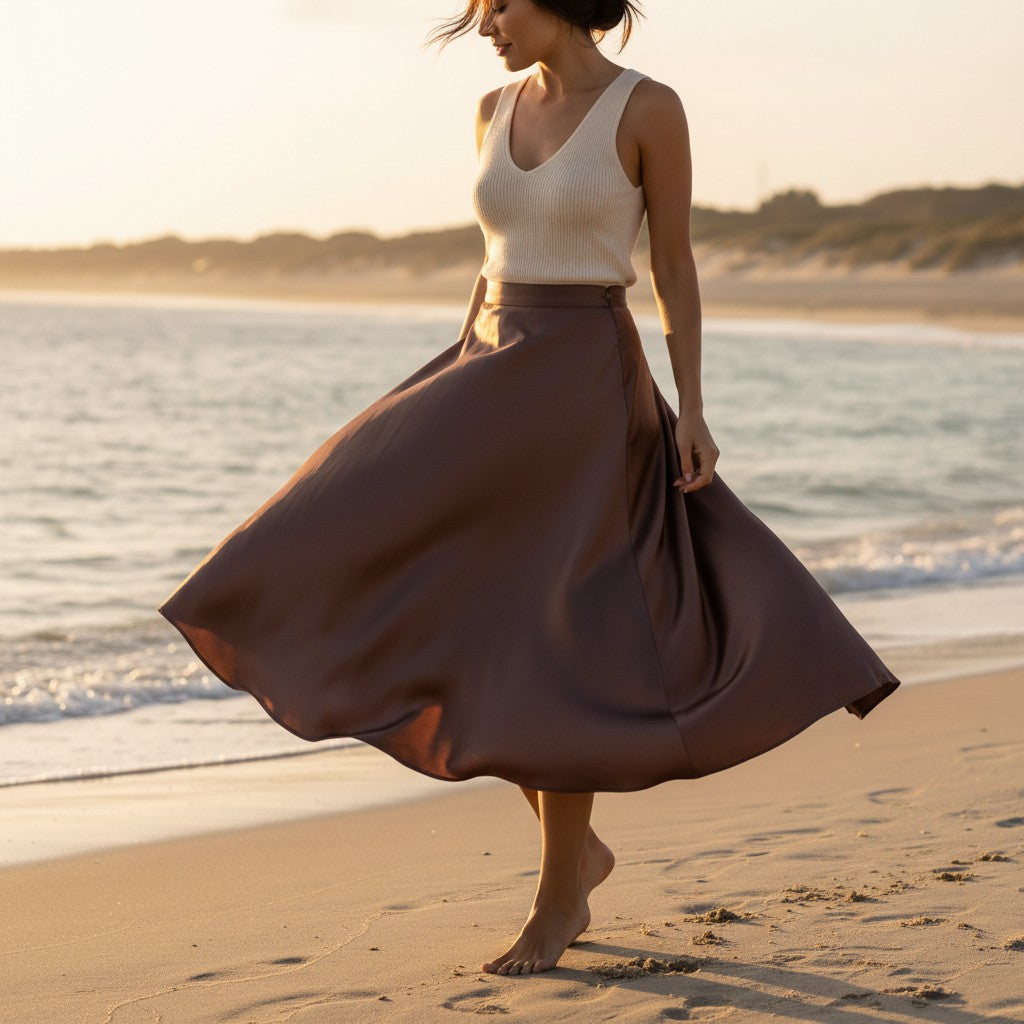 Craquez pour cette jupe en satin au tombé fluide et lumineux. Sa matière douce et satinée apporte une touche de chic instantané à n’importe quel look, de jour comme de soirée.