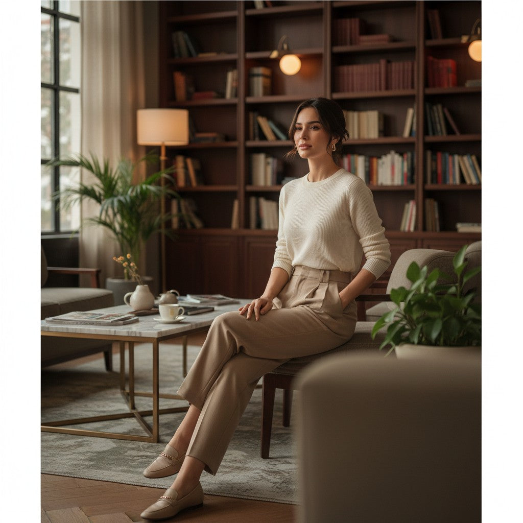 Pantalon taille haute confectionné dans une matière souple et confortable, avec une coupe droite légèrement fuselée qui met en valeur la silhouette tout en restant élégante et facile à porter, il présente des pinces sur l’avant qui structurent la ligne, des passants à la taille pour ajouter une ceinture, une fermeture zippée discrète et des poches latérales pratiques, une pièce chic et polyvalente qui s’adapte aussi bien à un look habillé qu’à une tenue décontractée.